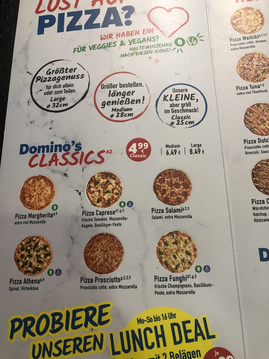 Domino's Pizza Gießen offers a dependable menu that champions classic Italian-American flavors with a German twist. Renowned for its reliably hot, generously topped pizzas, the menu features a variety of crust options served fresh from the oven. The dough strikes a perfect balance: crisp yet tender, providing a satisfying base without overwhelming the toppings. Noteworthy is their Caesar Salad—crisp, well-portioned, and complementing the pizza experience beautifully.